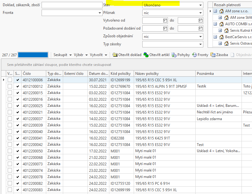 Pokud si zde zobrazíte všechny položky k výdeji/fakturaci, v základním zobrazení se Vám zobrazí pod sebou všechny položky k výdeji/fakturaci.