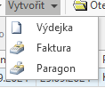 Následně můžete z vybraných řádků dokladu vytvořit doklad dle Vaší volby - Paragon nebude ve většině případů - suma částek nad 10000 Kč - vůbec dostupný.