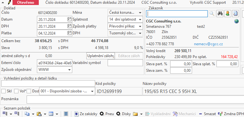 Po stisknutí OK se vybrané položky překlopí do dokladu dle výběru - Výdejka, Faktura, Paragon - a převezme se hlavička z vybraného dokladu: