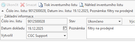 Po ukončení je možné vytisknout a zobrazit inventurní list.